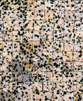 This particular species of stone is called Dalmatian Jasper for obvious reasons. Its mottled, pinpoint pattern creates an image reminiscent of a pointillist painting.