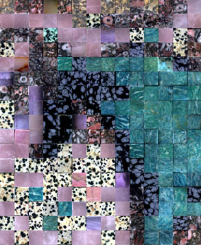 This work based on the Paleolithic paintings found in the Lascaux caves in France, and measures 3 feet by 1 foot and comprises of over 3,500 gemstones. The original images were painted on rock deep underground over 20,000 years ago, while its modern interpretation has been 'painted' with rock. The oldest art form recreated by one of the newest.