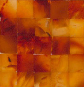 This piece comprises approximately 600 3/8" Carnelian gemstones and measures 9"x12".